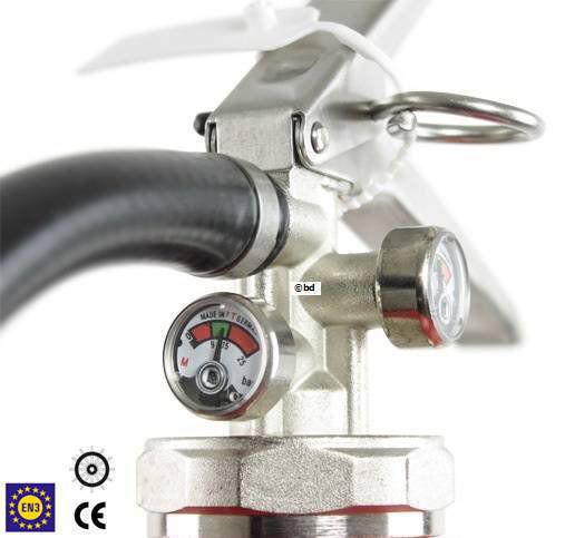 Composiet poederblusser voor beginbrand bestrijding. Poederblusser-6-kilo onderscheid zich in duurzaamheid en hoge kwaliteit. Poederblusser niet corrosie gevoelig en 20% lichter in gewicht dan stalen poederblussers. BlusPunt Brandblussers biedt 10 jaar garantie. Composiet poederblusser met twee manometers waardoor u altijd kunt controleren of de wijzers zich in het groene vlak bevinden. Bedieningsmechanisme van deze duurzame blusser is van roestvast staal en de afsluiter van messing. De cilinder is vervaardigd van aramide composiet vezel. Een uiterst sterk materiaal dat ook in kogelwerende vesten wordt verwerkt. Brandblusser met Rijkskeurmerk, stootvast en krasvast. Robuuste poederblusser die tegen een flinke stoot kan veilig online in de webwinkel bestellen. Meest ideale brandblusser voor brandpreventie conform het Bouwbesluit op bedrijfsterreinen en terreinen van havens, vakantieparken, pretparken, tankstations.