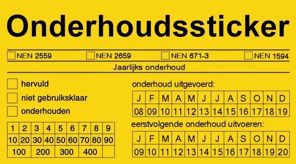 | jaarlijks of tweejaarlijks conform uw brandverzekering | : visuele controle door uzelf ( onderhoud etiket achterzijde composiet brandblussers ) |