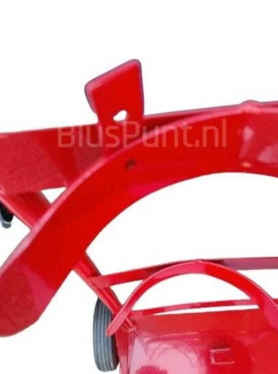 | deze stevige metalen brandblusserkar is belastbaar tot 50 kilogram | : inclusief twee gelaste ophangbeugels voor blussers |